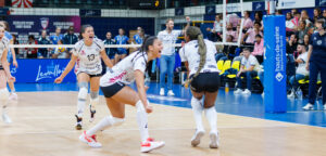 Après deux sets rondement menés (17-18, 17-21, 20-25 et 5-7, 13-17, 21-23, 22-25), les Mulhousiennes d’André Sa se dirigeaient tranquillement vers un succès en trois sets. Initialement chahutées dans cette 3e manche (12-10, 14-13), ces dernières inversaient la tendance grâce aux exploits individuels d’Uliana Kotar (14-15 et 15-19), Valeriia Gamanovich (14-16), Katelyn Evans (14-17) et Gretell Moreno (15-18 et 16-20). A 19-20, Katelyn Evans s’envolait derrière la ligne des trois mètres et trouait la défense bordelaise. Après avoir accordé le point à la Mulhousienne, les arbitres changeaient leur décision à la vue d’un vidéo-challenge peu évident faisant état d’un effleurage de la ligne fatidique (20-20). Un zeste de suffisance et une once d’énervement suffisaient à hypothéquer le capital mulhousien (21-23, 25-23). Pour avoir évolué sur un faux rythme et ne pas avoir forcé la différence, le VMA se retrouvait en appel au 4e set.